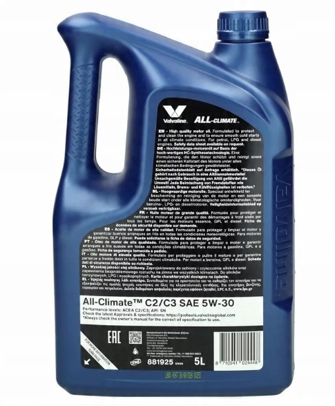 Normy i specyfikacje Valvoline All Climate 5w30 C2/C3: